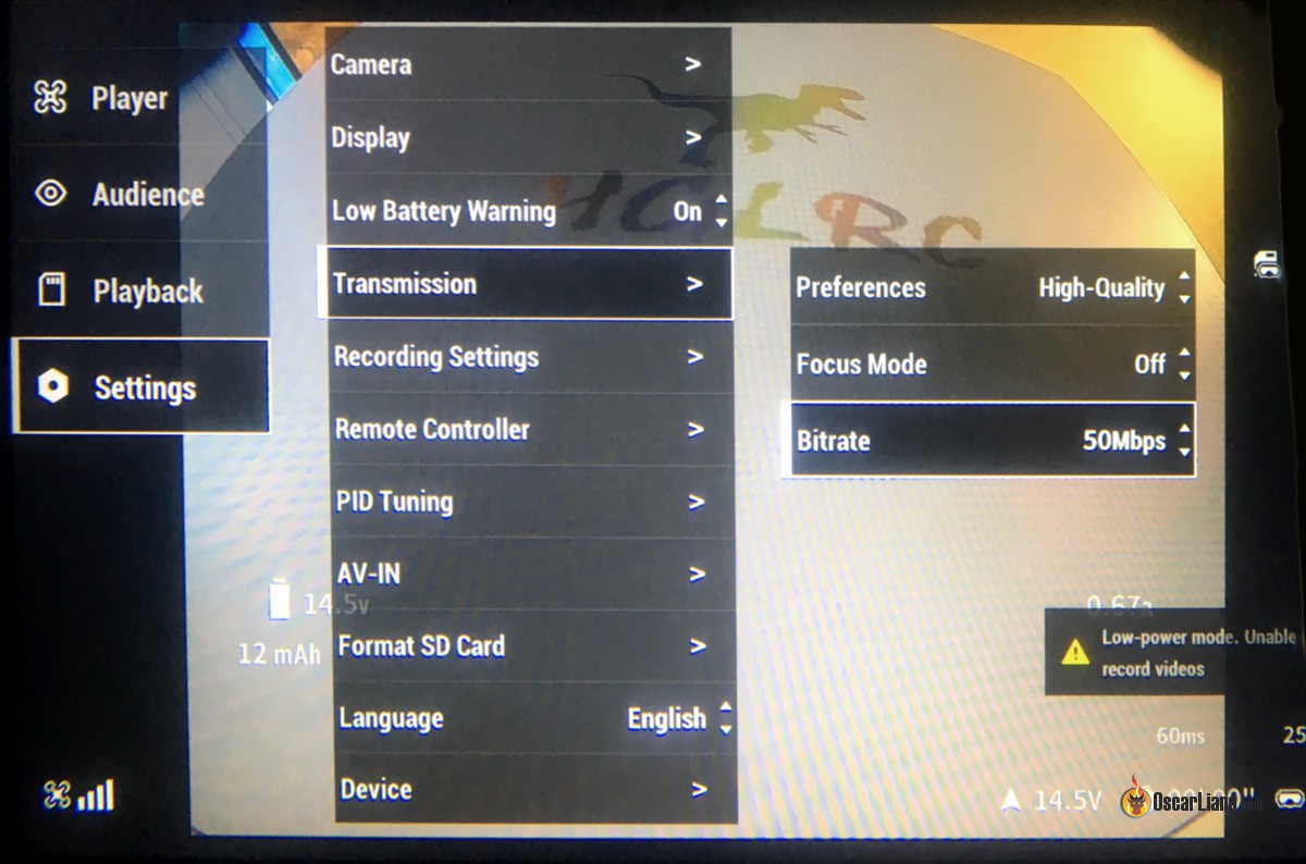 إن سرعة نقل البيانات الحقيقية في نظام DJI هي ٢٥ ميغابت في الثانية فقط. وعندما نفعل سرعة ٥٠ ميغابت في الثانية فإن النظام سيستخدم قناتي نقل للوصول الى السرعة المطلوبة لذلك سوف تنخفض عدد القنوات مرة أخرى من ٨ الى ٤ قنوات بعد تفعيل هذه السرعة.