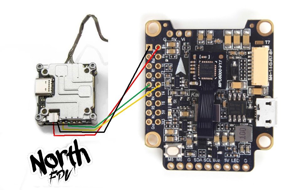 وهنا مثال على توصيل الفيستا على منظم الطيران FC ونلاحظ في هذا المثال ان استخدام الفيستا فقط كنظام ارسال فيديو حيث لم يتم توصيل وحدة الراديو اللاسلكي الخاصة ب DJI وهذا يعني انه تم استخدام وحدة اخرى من شركة اخرى مثل Crossfire Nano RX مثلا.
