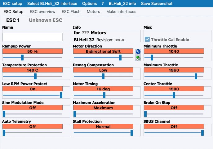 سنستخدم بيتافلايت و 32 BL Heli كمثال. في البداية قم يتوصيل منظم السرعة ببرنامج BL Heli Suite 32. قم بتغيير اتجاه المحركات كالتالي: